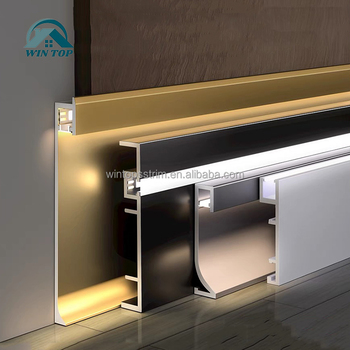 Win Top Aluminium Led Profil Jupe Métal Aluminium Plancher Plinthe Avec Led Lumière Noir Or Blanc Plinthe Éclairage